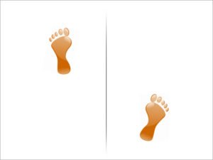 Os ângulos dos pés são menores, do que nos dois exemplos anteriores, com os dedos dos pés dianteiros apontando diretamente para frente.